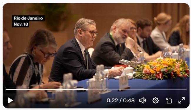英國首相施凱爾與中國國家主席習近平今天在20國集團(G20)巴西峰會舉行場邊會談,傳出施凱爾提及香港和“黎智英案”時,中方官員突然起身驅離現場英國媒體。