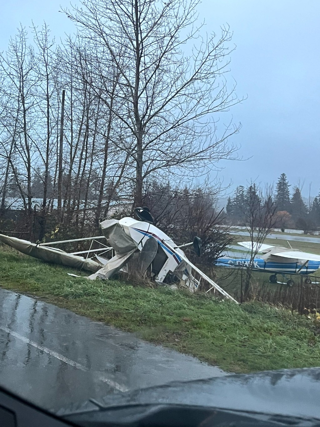 正面遭受沖擊的溫島,Courtenay Airpark的小飛機被吹飛。