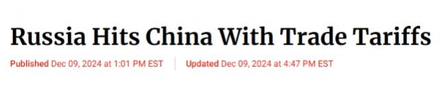美媒Newsweek引述業內人士質疑,為何俄羅斯“無限制”合作伙伴中國要面臨比歐洲供應商更嚴厲的關稅。