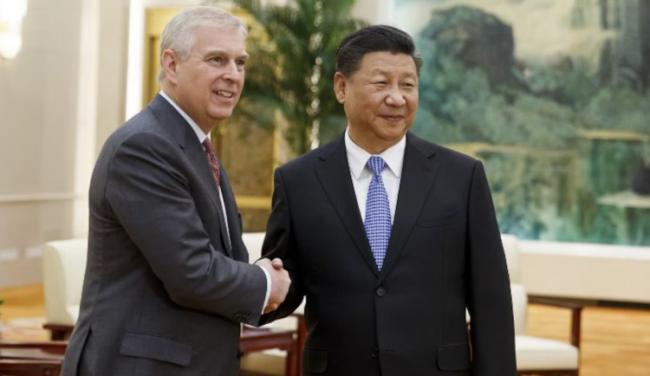 资料图片:2018年5月28日,中国领导人习近平在北京会见英国安德鲁王子。(法新社)