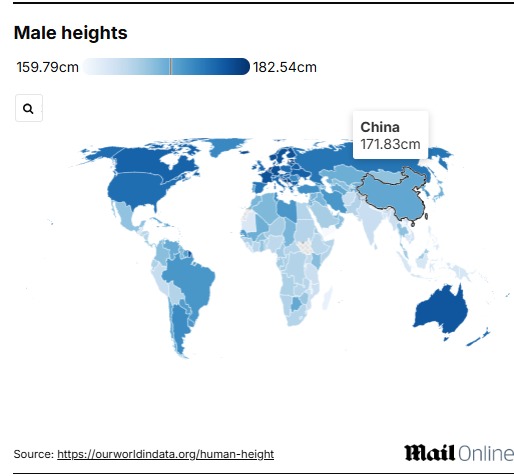 身高数据由牛津大学支持的平台“我们的数据世界”共享,适用于所有 195 个国家,涉及数百万参与者。