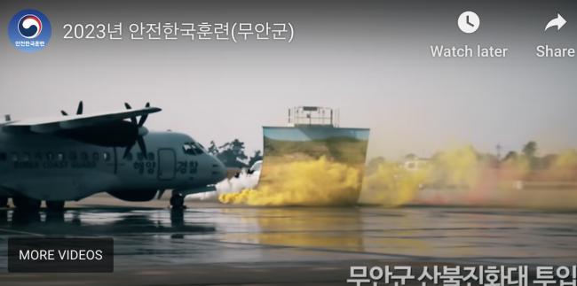 根据韩媒《纽西斯通讯社》,由韩国行政安全部所主导的“安全韩国训练”,其实去年12月就曾针对全罗南道务安郡进行空难消防救灾安排训练,相关影像在当时上传YouTube频道,影片中在模拟训练时的灾难设定为,2023年10月26日下午3时,位于全罗南道务安郡望云面的务安国际机场发生空难。