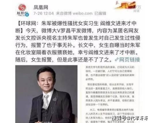 然而,2018 年夏天,一则惊人的指控打破了他原本平静且辉煌的生活。一位名叫弦子的女性在网络上发表长文,详细描述自己在央视实习期间,于化妆间内遭受朱军长达 40 分钟的性骚扰经历。此文一出,瞬间在网络引发轩然大波,舆论如汹涌潮水般将朱军卷入风暴中心,曾经的光环瞬间破碎,他从备受尊敬的央视名嘴,沦为千夫所指的 “性骚扰者”,职业生涯急转直下。面对这突如其来的指控,朱军陷入极度困境,生活发生翻天覆地变化,不仅事业遭受重创,精神上也承受着巨大压力。