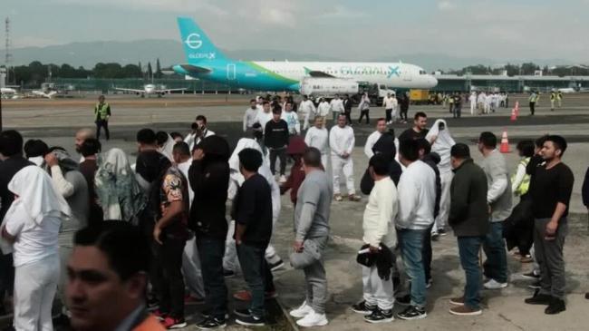2025年1月21日,危地马拉首都的机场停机坪上,被美国驱逐出境的危地马拉公民。 © Скриншорт з відео Reuters