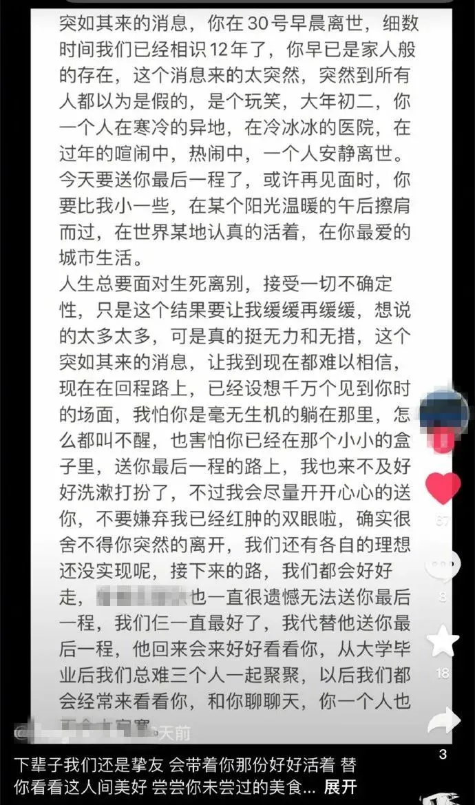 一自称梁佑诚挚友的网友