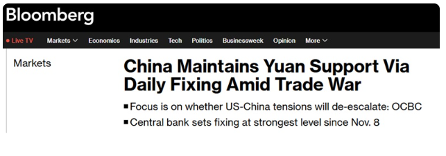 彭博社指出,此舉表明,盡管中美之間最新的針鋒相對的貿易措施令人民幣承壓,但北京當局不願讓人民幣貶值。壹些分析師此前壹直預計,中國央行會讓人民幣貶值,以提高中國出口產品的吸引力,並減弱美國關稅的影響,但這種說法尚未成為現實。