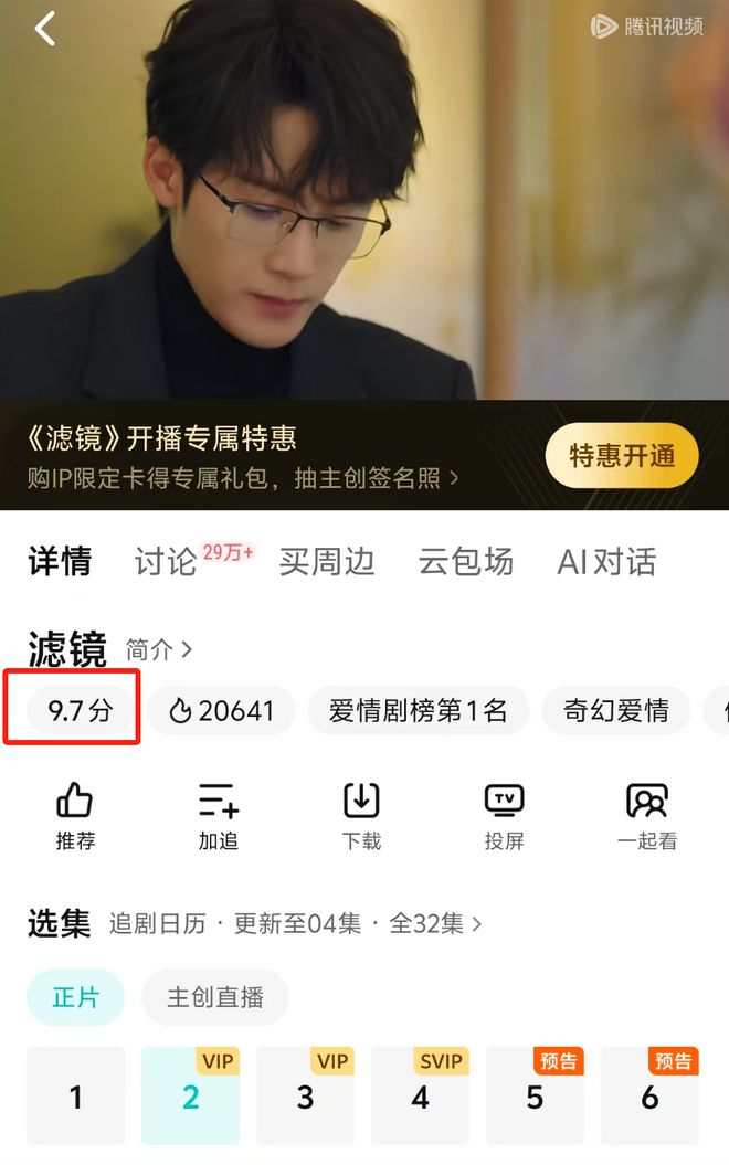 《濾鏡》首播叁集,評分高達9.7,熱度爆棚。