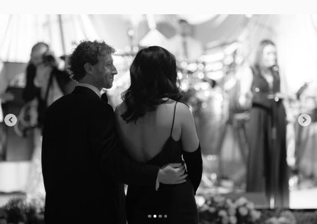 扎克伯格還分享了叁張婚禮般的照片,其中壹張是兩人手挽手站在華麗餐桌前的合影,餐桌上裝飾著白色椅子、長椅和華麗的大吊燈,普莉希拉穿著壹件淺粉色絲質長裙,深情地凝視著丈夫。普莉希拉的生日慶典也充滿了亮眼的甜品——壹個特別定制的蛋糕。蛋糕呈現為壹個巨大的銀色香檳桶,桶內還裝飾有金色細節,並且正面寫著她的名字“Priscilla”和她的出生年份“Vintage 1985”。這個豪華蛋糕堪稱藝術品,不僅體現了她的獨特風格,還為慶祝活動增添了不少奢華氣息。在生日派對中,普莉希拉的服裝變化令人驚艷。她先穿了壹件白色薄紗禮服,似乎與新娘裝扮相呼應,隨後換上了壹件黑色絲綢吊帶裙,搭配優雅的絲綢披肩,在親友們的歡呼聲中盡顯優雅與魅力。她還在舞池上換上了壹條焦橙色皮革連衣裙,性感迷人,盡情享受著舞動的樂趣。