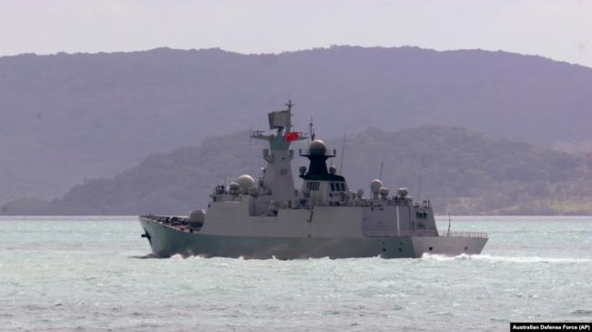 2025年2月11日,中國海軍江凱級護衛艦“衡陽號”在澳大利亞沿海的托雷斯海峽航行。(澳大利亞國防軍)