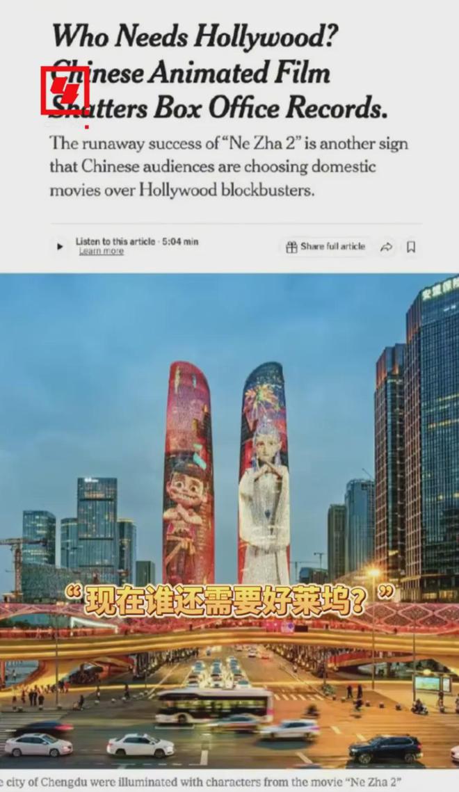 “誰還特麼需要好萊塢啊?《哪吒之魔童鬧海》刷新了中國票房紀錄,表明中國觀眾選擇國產電影而非好萊塢大片”