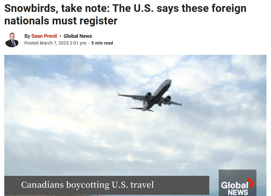 (加西網綜合)在美國訪問超過 30 天的外國人必須向政府登記以避免受到處罰,這壹變化可能會影響每年南下的數百萬加拿大人,包括候鳥族。