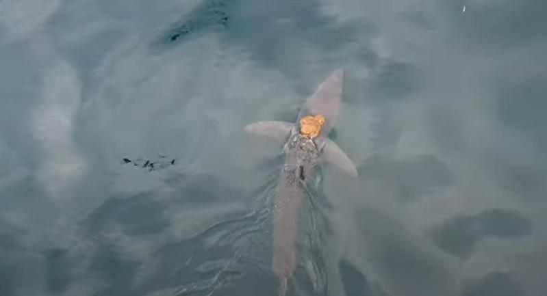 但後來用無人機近距離觀察後才發現,壹只章魚正騎在鯊魚背上,“我們可以看到這些觸手在移動”。