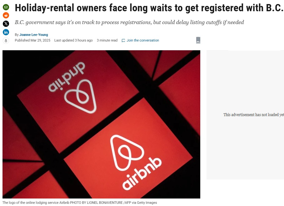 (加西網綜合) 5月1日是BC省短期租賃業主向省政府登記並繳納年費的最後期限。然而,壹些短期租賃業主表示,他們的注冊申請處理已被延遲,擔心在截止日期前未能獲得省級注冊號碼會影響其房源的運營。