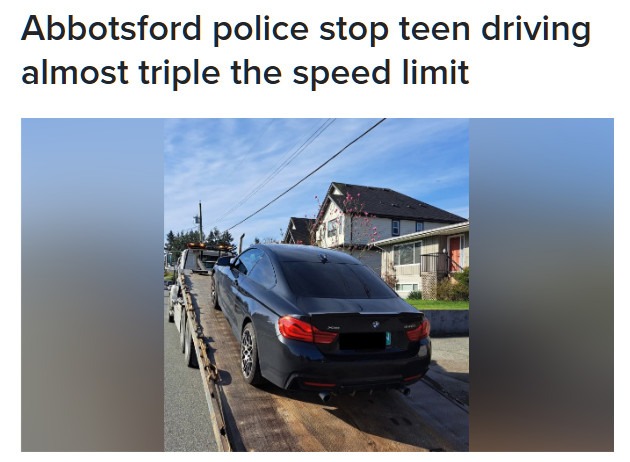 (加西网综合)阿伯茨福德警察局称,周五警方已在道路上抓捕了七名超速驾驶者,其中包括一名 18 岁男子,他的行驶速度接近限速三倍。