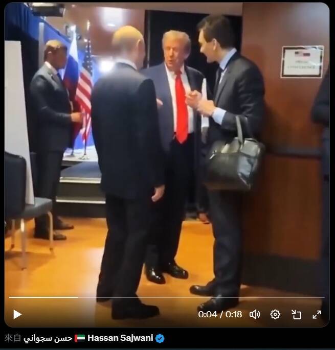 俄羅斯總統普京(前左)告別美國總統川普(中)時,腿部出現可疑的抖動。 (圖攝X片)- 新聞來源於其它媒體,內容不代表本站立場!