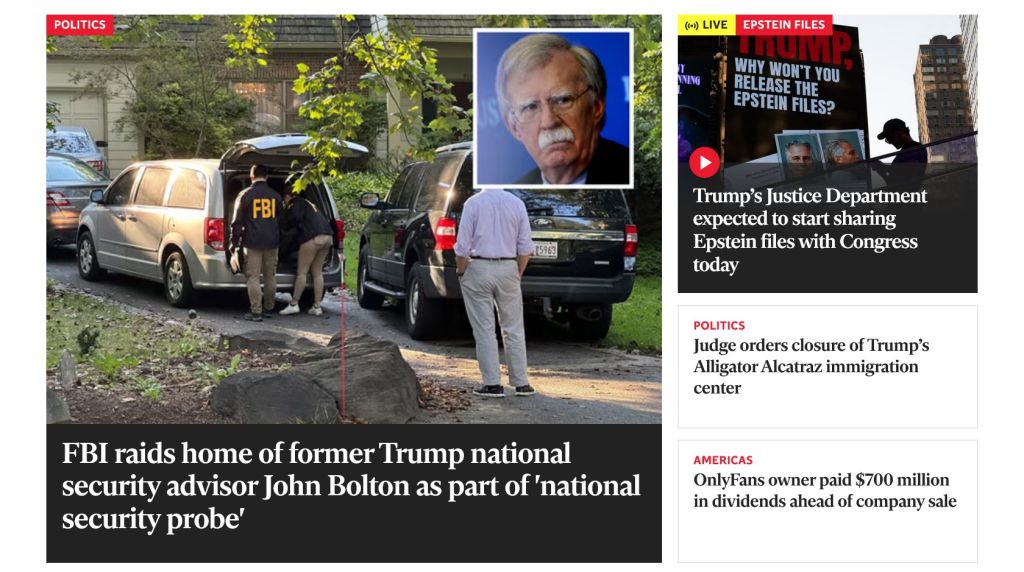 美國前國安顧問、同時是美國總統川普主要批評者波頓(John Bolton)遭到聯邦調查局(FBI)搜家,官員正在調查波頓是否不當泄漏國安資訊給媒體與其他人士,以損害川普政府。值得注意的是,波頓已經六年沒有擔任公職。