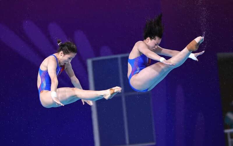 在单人3米板比赛结束后,奥运冠军全红婵在双人10米台比赛中亮相,拍档是世界大学生运动会冠军王伟莹。