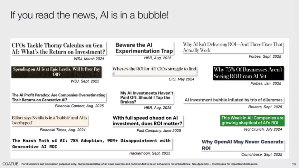 面对市场上关于“AI泡沫”的质疑,Coatue用数据给出明确反驳:AI技术正在各行业创造可量化的投资回报。