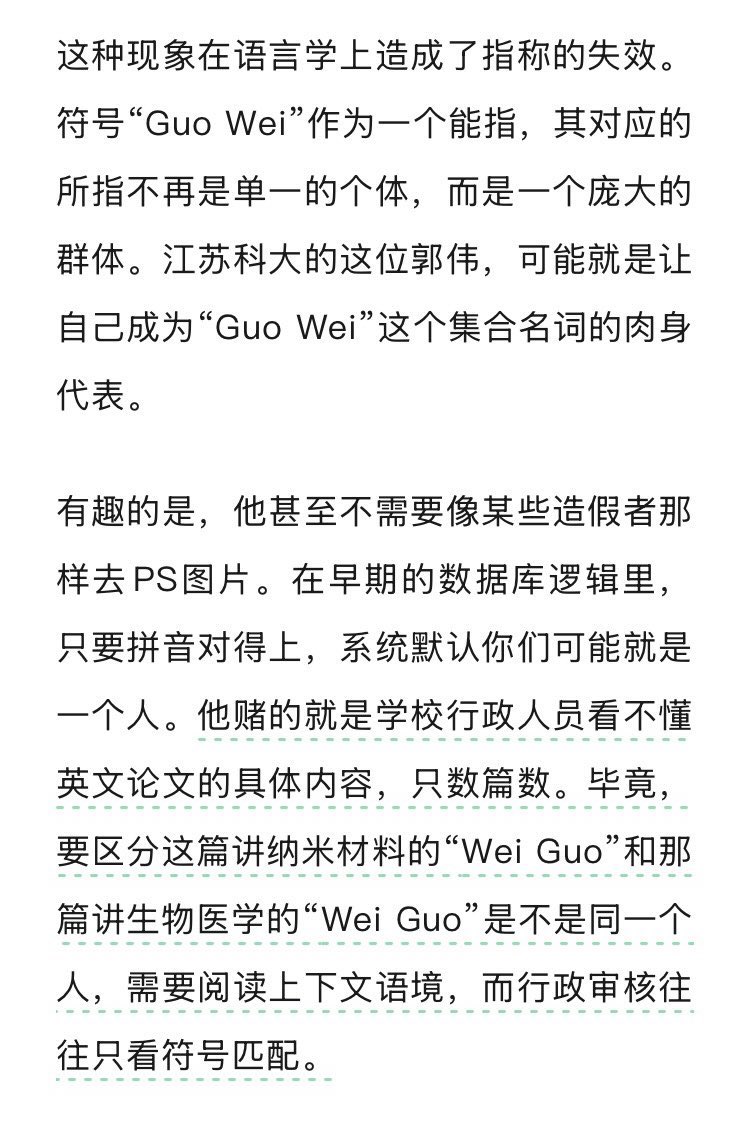 把跟自己名字拼音“Guo Wei”重名的论文揽到自己名下,再赌学校行政人员看不懂英文。