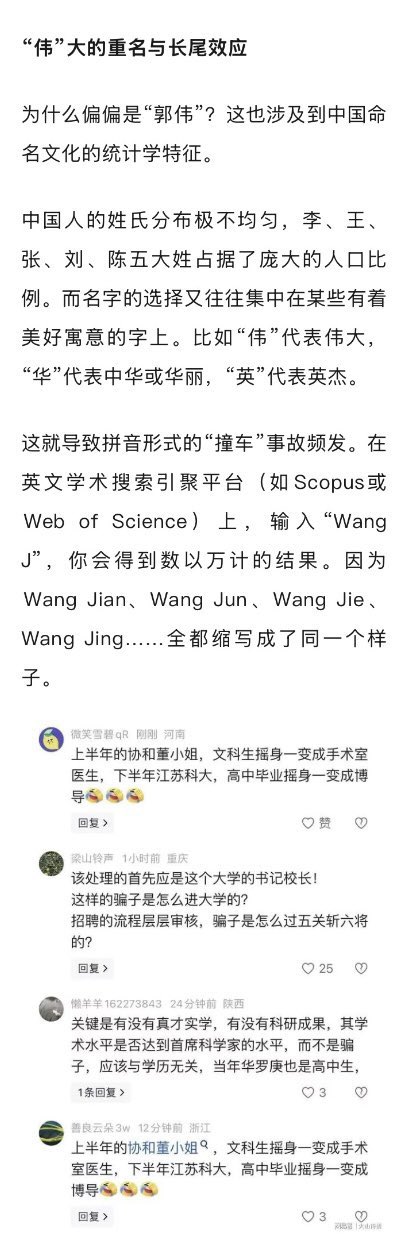 上半年协和董小姐,下半年科学家郭伟,现实比小说还精彩啊!
