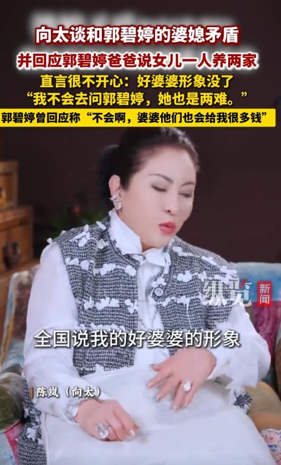壹則關於“郭碧婷壹人賺錢養兩個家”的網絡傳言,最終演變成壹場牽扯出婆媳關系、家庭邊界與公眾形象的微妙回應。向太陳嵐在最新發布的視頻中,首次正面談及因親家公壹句話而受損的“全民好婆婆”形象,直言“我當然是不開心”,“好婆婆”的形象受損”,但強調不會去質問兒媳郭碧婷及其父親,只因“不想為難兒媳”。這番看似大度卻信息量拾足的剖白,將豪門家庭內部那本不易為外人道的“經濟賬”,推至台前。