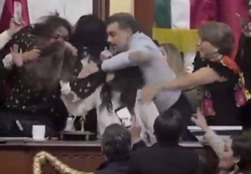 墨西哥首都墨西哥市議會15日出現全武行,執政黨、反對黨在辯論法案時,壹言不合演變成肢體沖突,多名女性議員在主席台上互扯頭發、扭打對方,導致場面失控。
