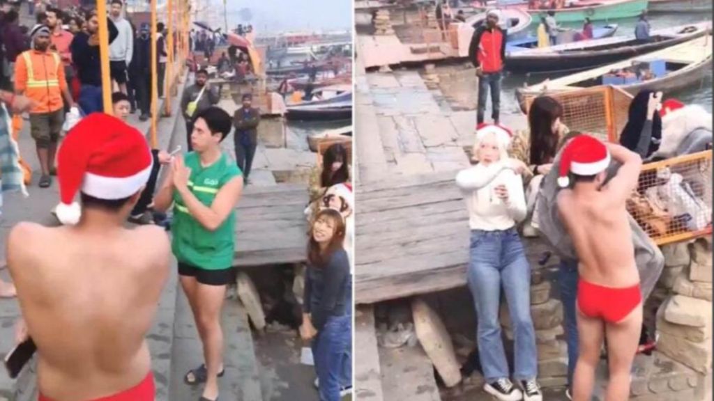 印度媒体指出,根据近日在网络上疯传的影片,有日本游客为了在去年12月25日进入恒河,身穿泳衣、头戴圣诞帽现身河畔。 此举引发当地民众不满,认为游客企图在圣河中玩水,随后更指控其中一名日本游客在河中小便。 面对突如其来的状况,日本游客一脸惊慌,急忙向现场民众道歉,然而当地居民仍大声斥责,现场围观人潮逐渐聚集,最终将日本游客团团包围。