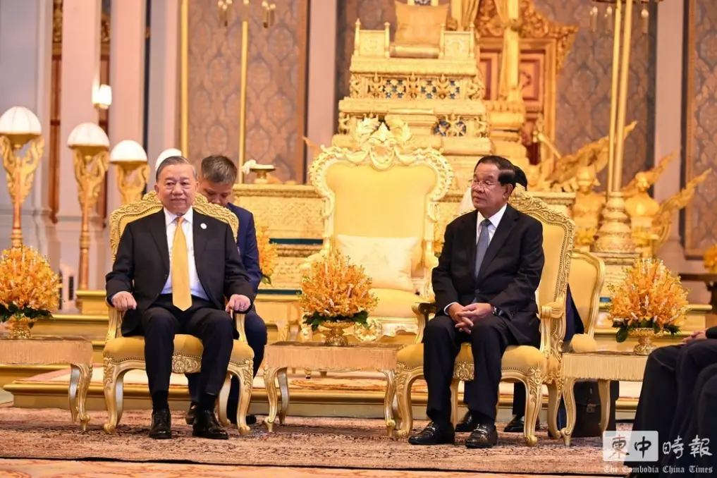 6日上午,洪森以柬埔寨国家代元首身份,在金边王宫迎接到访的越共中央总书记苏林,并就其对柬埔寨展开国事访问举行礼节性会晤。