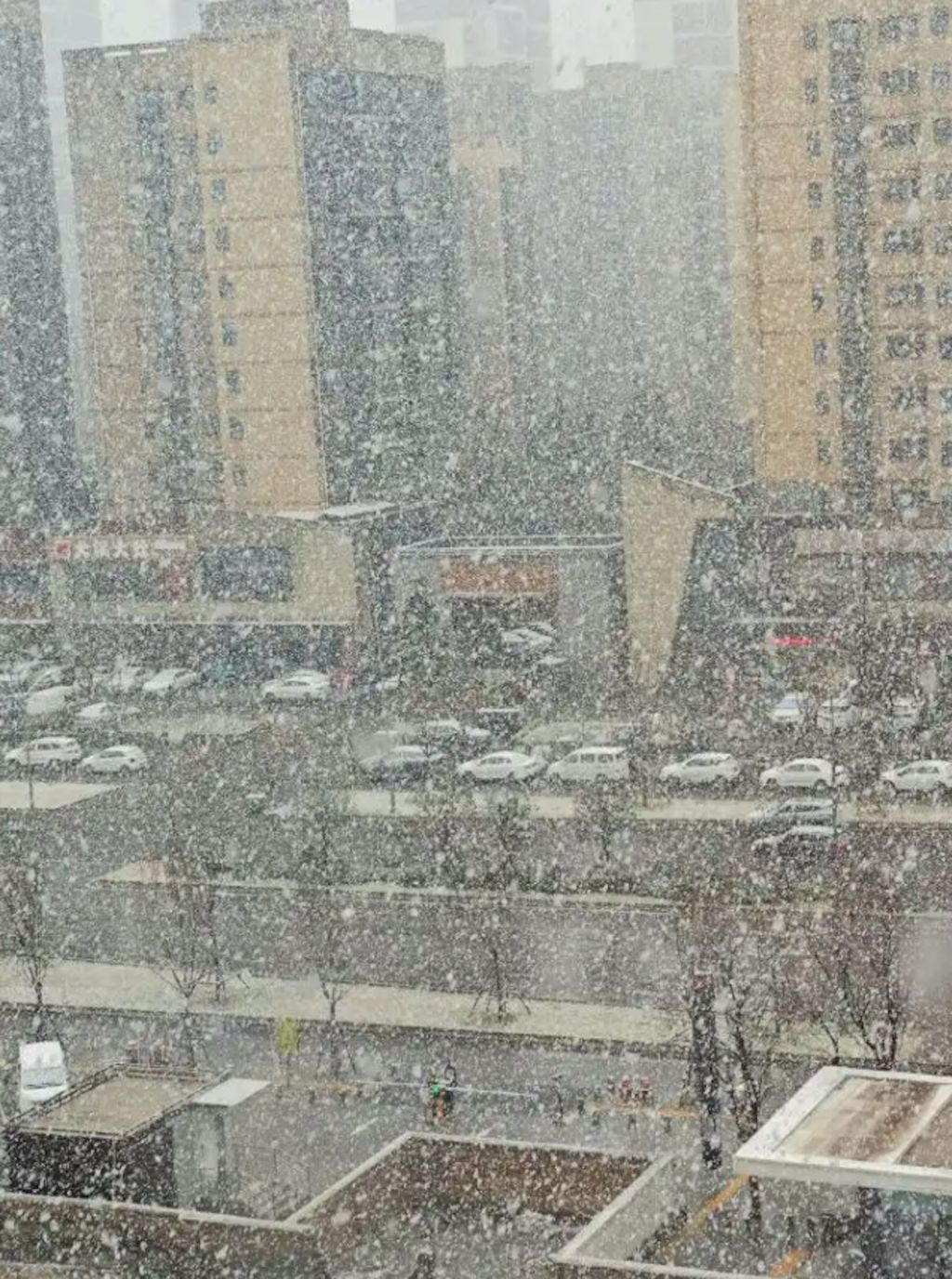 西安气温急降,大雪纷飞。(《锦观新闻》)