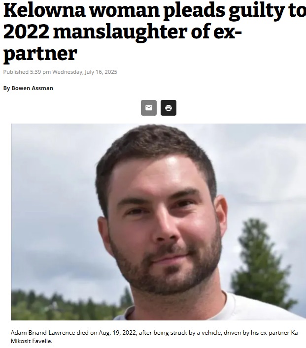 根據kelownacapnews的報道,該案發生於2022年8月19日,受害者為其前男友亞當·布裡安-勞倫斯(Adam Briand-Lawrence),終年35歲。被告此前已承認較輕罪名——過失殺人。