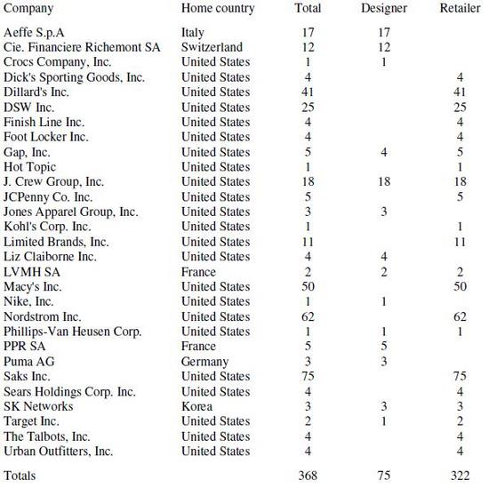 从上图我们可以看出,美国第一夫人着装涉及到的大部分是美国公司,但也有外国的公司,比如韩国的SK Networks;除了高级的时装品牌外,美国第一夫人还光顾大众商店,比如Target(我有时候也会逛逛这个店,便宜呀…)。