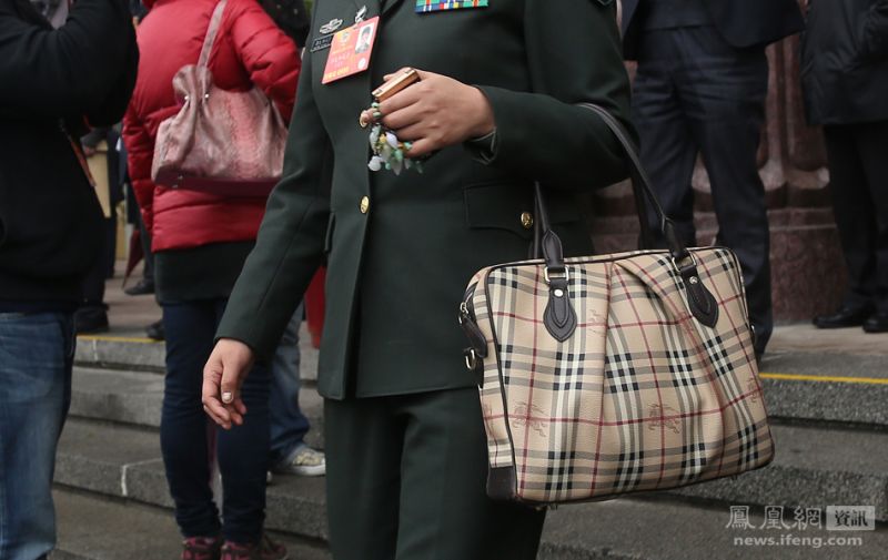 貂皮大衣、名牌包包、華貴珠寶……雖然今年中共新壹屆領導提倡厲行節約,改進工作會風,這些奢侈品仍然在代表委員們身上低調地閃耀著。圖為壹名代表身背香奈兒包(Chanel)合影。