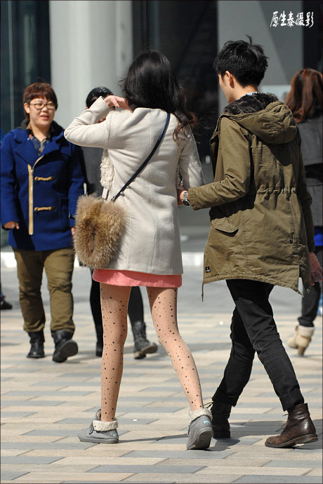 昨天北京天晴,雖然有2~3級陣風,因為空氣質量好,出門逛街的人特別多。天氣預報說的是最低氣溫零下2℃,最高氣溫11℃,在這樣的氣候條件下,街頭人們的著裝伍花八門,有的穿著冬裝,有的換上了春裝,還有的甚至提前穿上了夏裝,這真應了“贰八月亂穿衣”的老古話。盡管是亂穿衣,但其實還是有壹些規律可循,除極個別情況,亂穿衣基本上會在這樣的框框下出現:女人比男人經凍,下半身比上半身經凍。