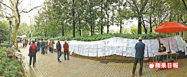 上海公園變相親市場 父母搶女婿