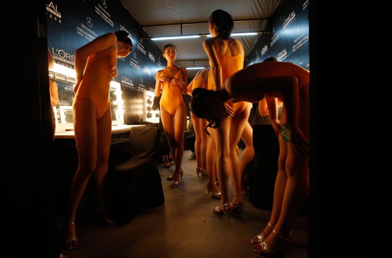 3月30日,“第8屆中國超級模特大賽總決賽” 在北京舉行的中國國際時裝周閉幕日上舉行,圖為比賽現場後台