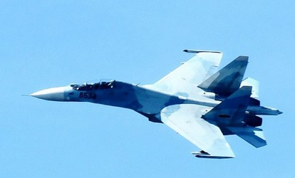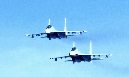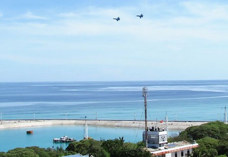 4月28日,越南空軍兩架蘇-30戰機侵犯中國南沙群島南子島領空,飛機編號為8534、8538。近處為越南侵佔掉[泄獻擁海洞ξ坡殺鑾謥椎奈夜弊擁骸