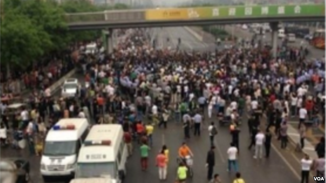 數以百計的安徽老鄉7號在事發地點舉行游行抗議。有目擊者說,北京木樨園路段已被游行隊伍阻塞,北京警方出動大量警力, 當局還出動了直升機。