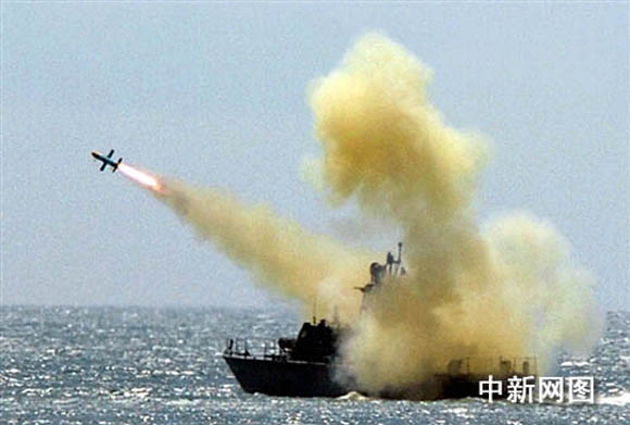 資料圖:台灣自制艦對艦“雄風”導彈發射。