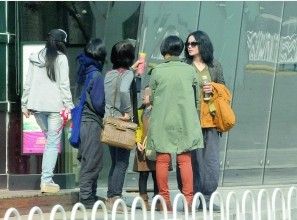 當天王菲身穿壹件深色休閒西服,貼身套著件褐色T恤,下身穿著壹條肥大的休閒褲,形象舉止沒有以往的明星氣息,多了幾分闊太的感覺。春風吹亂了王菲的頭發,她面露壹絲焦急之色,不停地撥打電話,在幾位女士的“包圍”中記者看到還有壹個小女孩,她扎著小辮,穿著壹條深色連衣裙和黃色毛衣,記者馬上認出她就是李嫣。