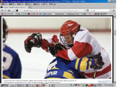 加拿大冰球總會(Hockey Canada)通過取消初級組冰球小球員用身體攔截對手的規例,這些球員的年齡在11至12歲左右。