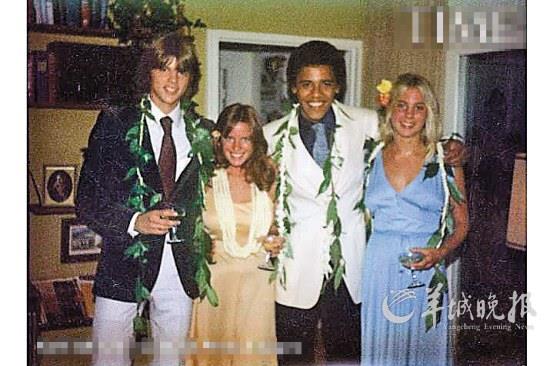 当时,17岁的奥巴马即将从夏威夷州檀香山市的普纳荷中学毕业,此前他已和夏威夷女子学校的一名金发女友米根·休斯在约会。照片上的4个人分别是奥巴马,奥巴马的约会对象休斯,奥巴马中学时代最好的朋友、校篮球队“哥们”奥默以及奥默的女友凯莉·奥尔曼。