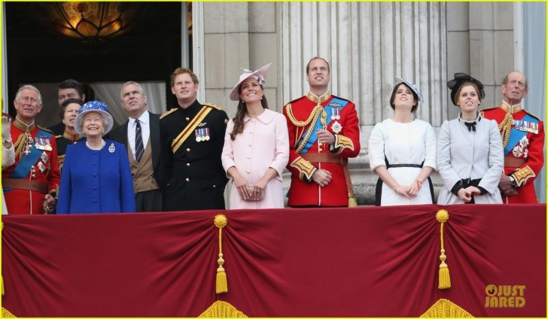 當地時間6月15日,英國倫敦,女王攜皇室亮相閱兵典禮,即將臨盆的凱特王妃盛裝亮相微笑優雅,並不時與身邊的威廉王子和哈裡王子熱聊。