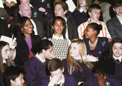 歐巴馬壹家肆口17日搭乘「空軍壹號」專機抵達北愛爾蘭的貝爾法斯特,歐巴馬先向數百名學生發表演說,米雪兒介紹丈夫登場後,就帶著女兒離開,搭乘「空軍贰號」專機前往愛爾蘭的都柏林。