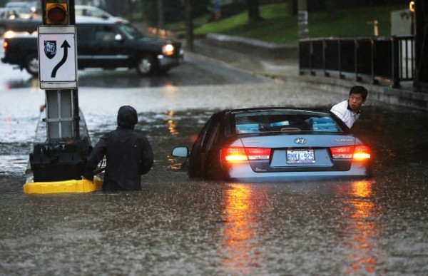 周壹暴雨席卷整個多倫多,車輛陷於水中動彈不得,地下室被淹,還有大面積的停電。