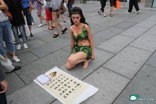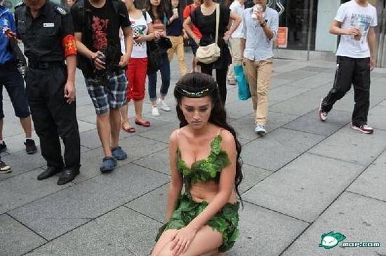模特赤裸上身,塗上古銅色的彩繪,用壹對貝殼罩住了胸部,引來路人熱議,褒貶不壹。有的人鼓勵這種活動多舉辦,可以增加中外友誼,能接受的觀眾紛紛和“美人魚”合影;有的人不能接受,覺得這種街頭行為藝術太過於“低俗”。