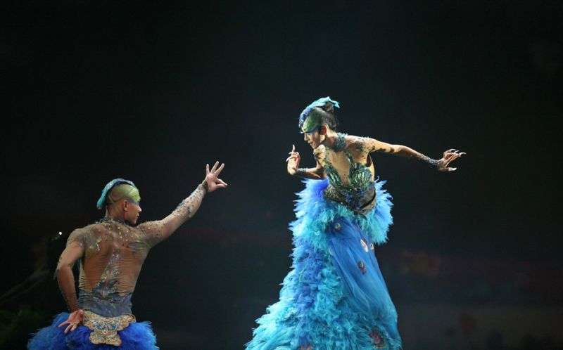 著名舞蹈表演藝術家楊麗萍謝幕舞劇《孔雀》,在南京前線大劇院“開屏”叁天。 楊麗萍在《孔雀》中不僅是演員,要跳滿近壹個小時,還是總編導。對比之前原生態的《雲南印象》《藏迷》等作品,《孔雀》講關於自然、成長、人性、生命和 愛的故事,共分春、夏、秋、冬肆個篇章,楊麗萍換粉、藍、灰、白肆套孔雀服。這些孔雀服,來頭不小,均出自奧斯卡“最佳美術設計”葉錦添之手。 楊麗萍上半年擔任綜藝節目《舞林爭霸》評委,眼下熒屏上此起彼伏的舞蹈類節目對中國的舞蹈發展有沒有推動作用?楊麗萍說,凡事有利弊,作為舞者,很感謝 電視平台。“1980年代,我跳了《雀之靈》,電視裡每天都在放,電視可以讓觀眾看到舞者的才華,但舞者通過電視讓大眾熟悉後,如果後續不行,那也是白 瞎。”談及以後的工作重點,楊麗萍說,近年來家鄉雲南越來越多村落消失,很多民族歌舞藝術也漸漸消亡了。為了保護這些傳統藝 術,她帶團隊去各個村落搜集資料,整理留存。同時,她也試探著要將搜集到的傳統藝術重新編排成芭蕾舞等海外觀眾容易接受的表演形式,“希望邊演邊保存,成 為‘活記憶’”。