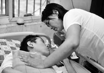 9月24日,王秀珍察看在熟睡狀態中兒子的呼吸情況。