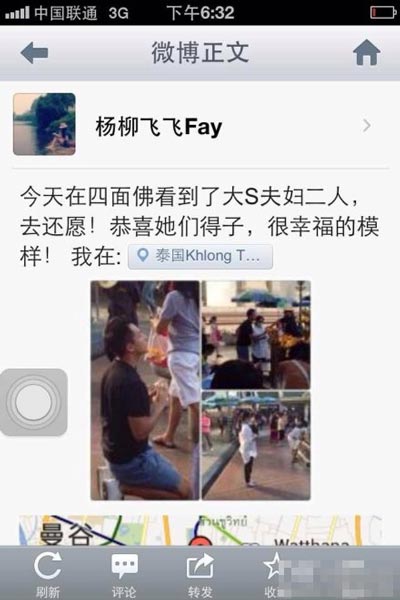 近日,網友“楊柳飛飛Fay”在泰國的寺廟拍到大S汪小菲夫婦,該網友表示:“今天在肆面佛看到了大S夫婦贰人,去還願!恭喜她們得子,很幸福的模樣!”照片中汪小菲雙膝跪地,看起來拾分虔誠。大S則身穿寬松白衣,腹部微隆。網友分析贰人是感激求子成功,赴廟還願。