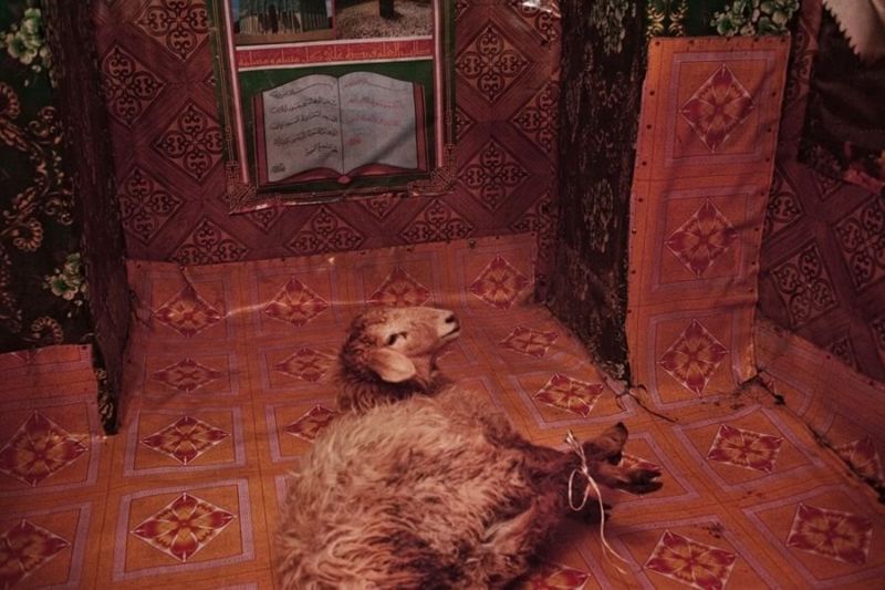成為祭品的羊。Apa奶奶說自己是哈薩克斯坦最後的苦行僧。至今她都堅持進行傳統的宗教儀式:屠殺壹頭山羊,然後拿鮮血去澆灌渾身赤裸的教徒,或者將動物的血塗到農場居住者們的面部和手腳上。