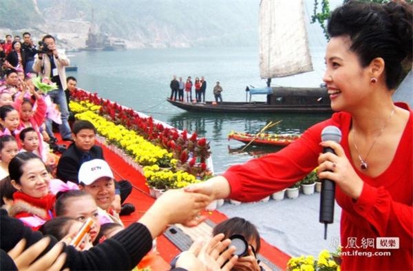 2007年10月12日,中央電視台《新視聽》特別節目“山歌好比清江水”大型歌會首次走進巴人故裡、神秘的清江畫廊湖北長陽土家族自治縣。夢鴿獻唱與觀眾握手,笑容滿面。